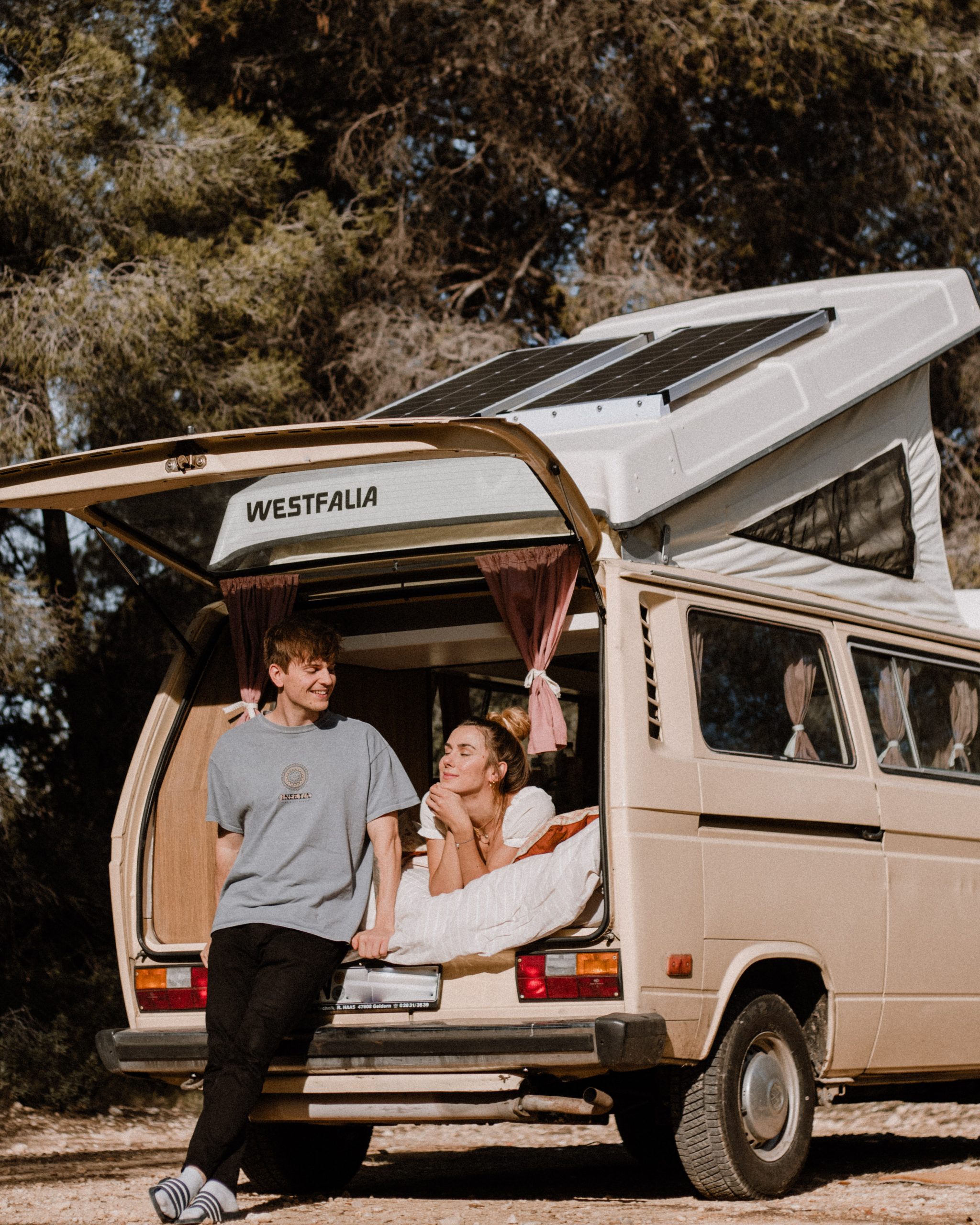 Wir haben alles was wir im Bulli für unsere autarke Stromversorgung verbaut haben bei Offgridtec gekauft (autark bedeutet, dass wir komplett unabhängig sind und nicht auf Strom oder Wasser vom Campingplatz angewiesen sind). Bei Offgridtec kann man sich ein individuelles Angebot zusammenstellen lassen, was für uns unglaublich hilfreich war, da wir, wie ich ja schon erwähnt habe, absolut planlos und unerfahren waren. Letztendlich haben wir uns für 200 Watt Solarpanels auf dem Dach entschieden (also zwei Panels mit je 100 Watt).